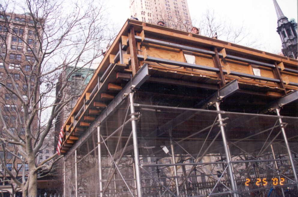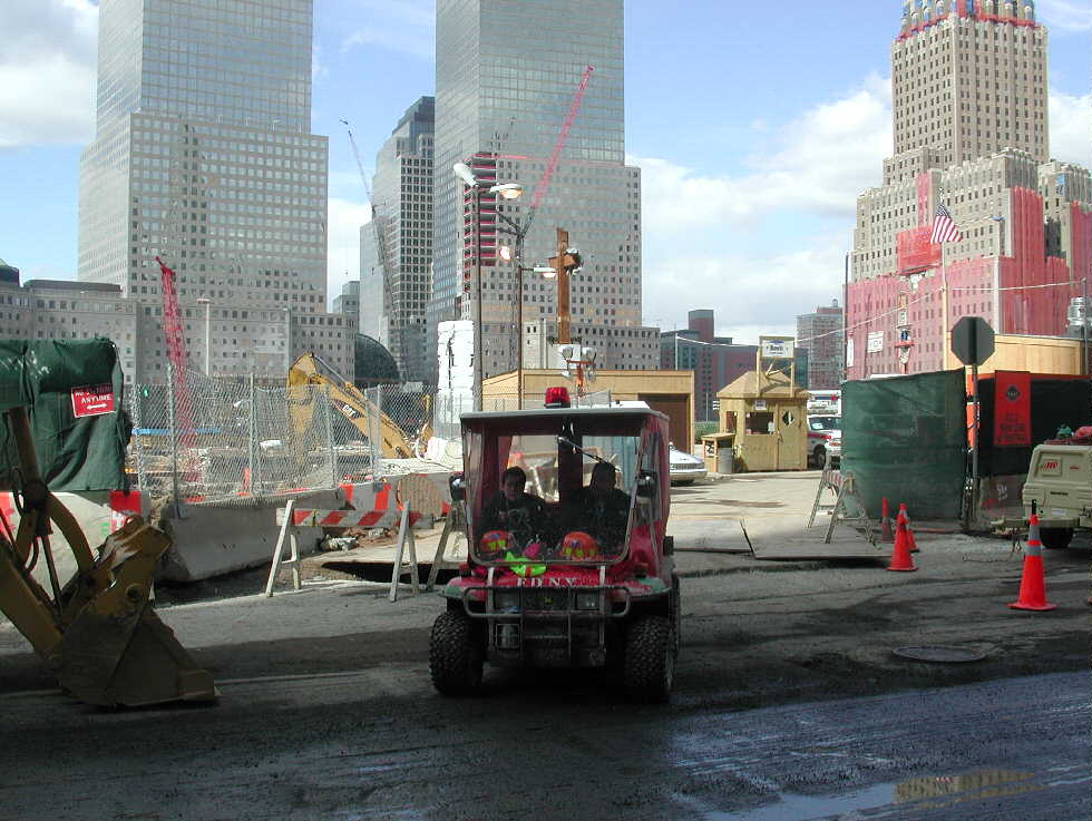 The following photographs taken on February 25, 2002 (except as noted), show a mix of the public observation platform, public memorials, temporary facilities and construction activity at the WTC.